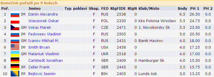 1.IM Bernášek Jan (CZE 2490) 7,5b 2.GM