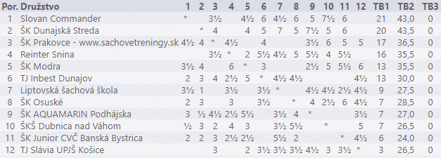 Slávia Košice) 3,5b .... 20 hráčov